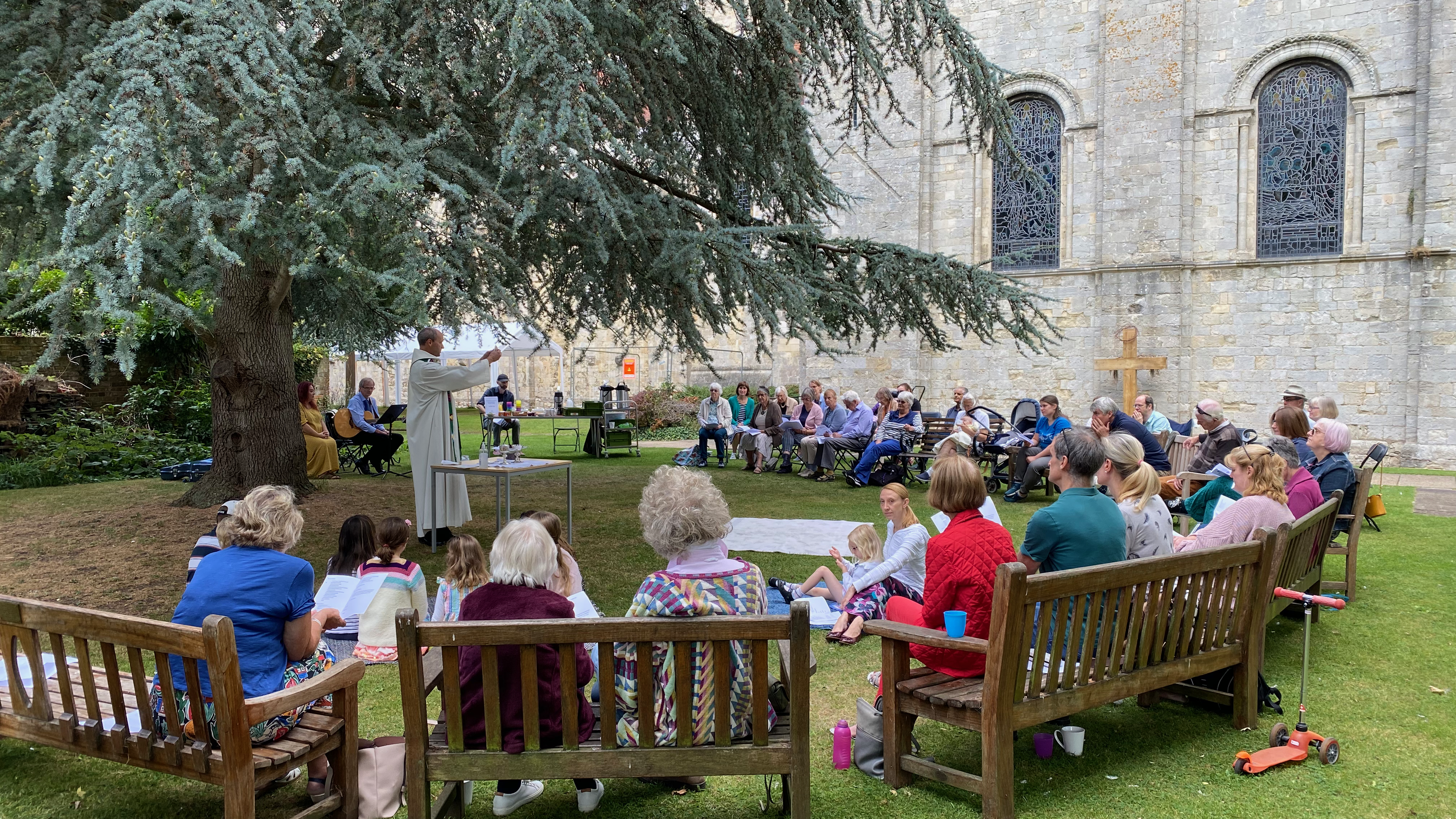 Abbey Vine is our more informal service meeting weekly at 11.15am in St. Nicholas' Chapel and occasionaly outside during warmer Summer days. Songs and hymns are led by our talented Vine musicians and this is a service popular with all ages and includes Holy Commuion once a month.