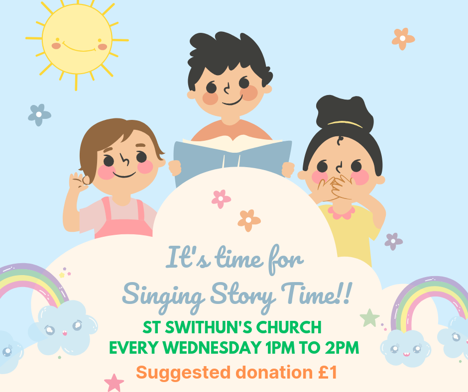 Come along to St. Swithun's, Crampmoor on Wednesdays at 1pm for stories, songs, play, snack and a chat.