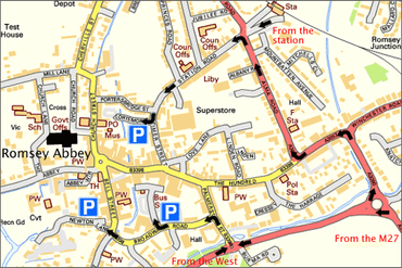 As shown on the map below, there are several public pay-and-display car parks in Romsey suitable for leisure visitors (including Newton Lane, Lortemore, Broadwater Rd and Crosfield Hall). Sunday worshippers may park in roads near the Abbey with fewer restrictions.